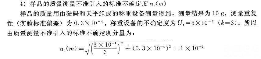 正文摘要:JJF1059.1-2012的A3.4例子中P45頁:4)樣品的質量測量不準引入的標準不確定度ur(m) 其中描述了“測量重復性(實驗標準偏差)0.3×10-4,”。并應用于隨后的相對標準不確定度合成。 我的問題是: 1、這個測量重復性前 ... |