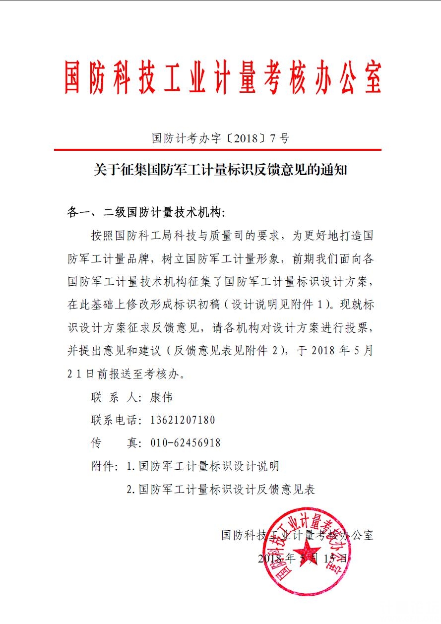關于征集國防軍工計量標識反饋意見的通知