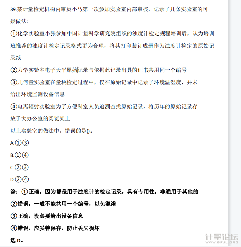 | 求個這個題目的出處。題干里也只是寫了計量檢定機構,到底是法定、授權、還是一般都沒說明,你也沒說明你單位的性質,所以沒辦法給你找依據,參考的考核規范不一樣,類似我們法定計量檢定機構,在1069的5.5條款和實施指南里明確要求“機構應制定記錄控制的管理程序,明確規范記錄格式的設計與審定,記錄的唯一性標識......”,①里面直接拿來就用的方式肯定是要開不符合項的 |