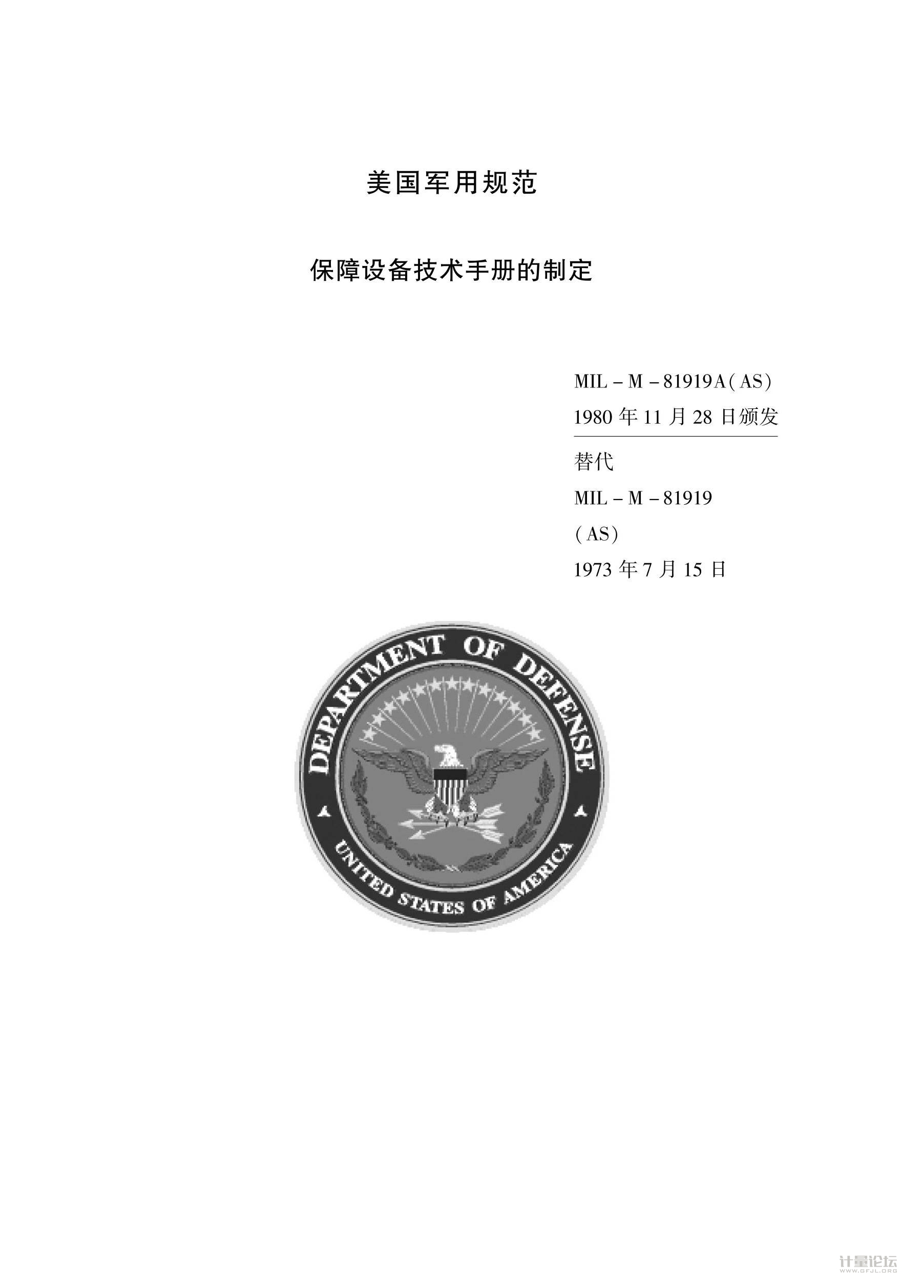 MIL-M-81919A(AS)美國軍用規(guī)范保障設(shè)備技術(shù)手冊的制定(中文版)