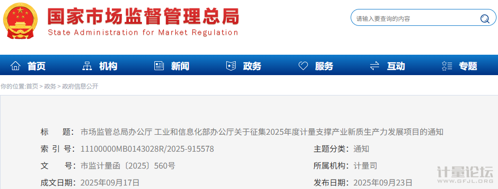正文摘要:市場監管總局辦公廳 工業和信息化部辦公廳 關于征集2025年度計量支撐產業 新質生產力發展項目的通知 中國科學院、中國工程院辦公廳,中核集團、航天科技、航天科工、航空工業、中國船舶、中國電科、 ... |